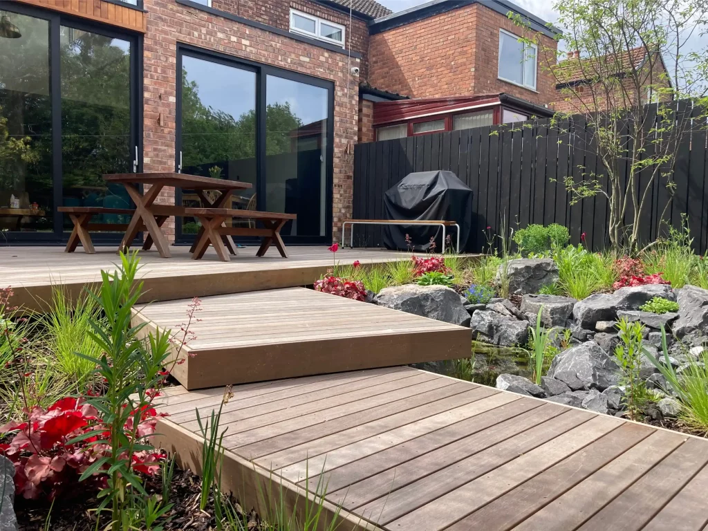 This contemporary space in South Manchester is slightly different from most gardens in that it contains no paving. Instead the client opted for a large hardwood deck which was angled to mirror the architecture of the new extension to the property. Cantilever hardwood deck steps seem to hover over the wildlife pond and lead down […]